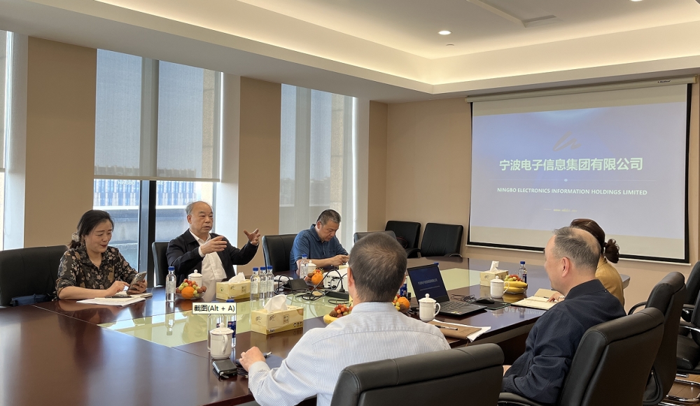 •   4月23日下午,寧波市企業家協會會長李謙、常務副會長兼秘書長張延等領導一行蒞臨寧波電子信息集團有限公司考察調研。寧波電子信息集團有限公司黨委書記、董事長、總裁李凌對協會領導的到訪表示熱烈歡迎,雙方進行了深入交流。