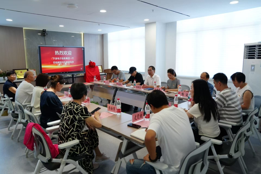 •   7月15日下午,中共寧波電子信息集團有限公司機關黨支部與朝陽社區黨委在朝陽未來社區會議室舉行黨建聯建簽約儀式,雙方黨組織負責人共同簽署《黨建聯建協議書》,開啟以“黨建+”模式為紐帶,整合雙方各自優勢和共建力量,創新推出“黨群智慧合伙人”機制,共同探索黨建聯建創新路徑,推動資源共享、優勢互補,實現企業發展與社區治理雙向奔赴。